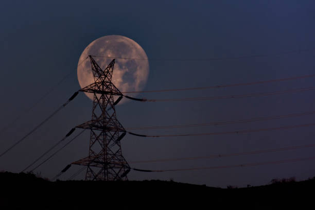 A power transmission tower eclipsing the moon.