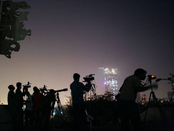 MUMBAI, INDIA – DECEMBER 10, 2011: Mediamen shoot the lunar eclipse on Saturday at Nehru Planetarium. (Photo by Kalpak Pathak/Hindustan Times via Getty Images)