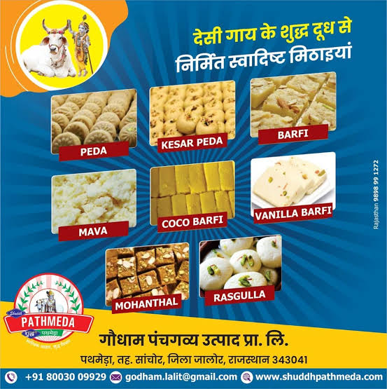 पथमेड़ा गौशाला के उत्पाद और मिठाइयाँ केवल व्यापार नहीं, बल्कि गौसेवा का साधन हैं।